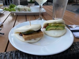 Another new place for us is La V Vietnamese Fusion. We are dedicated fans of Soft Pillow Buns stuffed with grilled shrimp (his favorite) or avocado (my favorite). They also come filled with tofu, pork belly, and chicken. Pairing these with a bottle of NIgori cold sake is a perfect small plate meal. When the weather cools in November, I look forward to chicken pho soup.